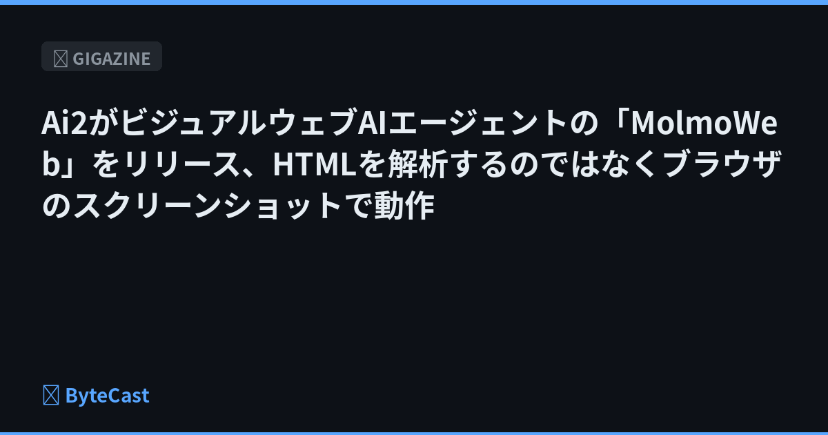 アメリカに拠点を置くAI企業のアレン人工知能研究所(Ai2)が、ブラウザを操作・制御するように設計されたAIエージェント「MolmoWeb」を発表しました。