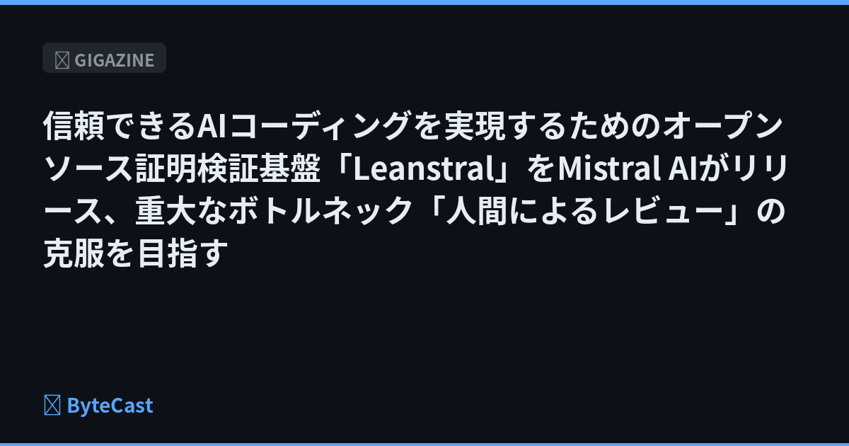 信頼できるAIコーディングを実現するためのオープンソース証明検証基盤「Leanstral」をMistral AIがリリース、重大なボトルネック「人間によるレビュー」の克服を目指す