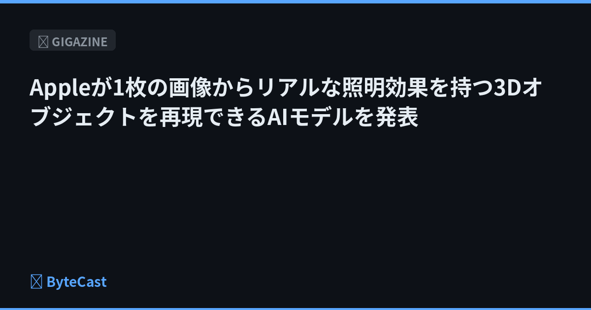 Appleの研究チームが反射やハイライト、その他の効果を様々な視点から見ても一貫して維持しながら、一枚の画像から3Dオブジェクトを再構築することができるAIモデルの「LiTo」を開発しました。