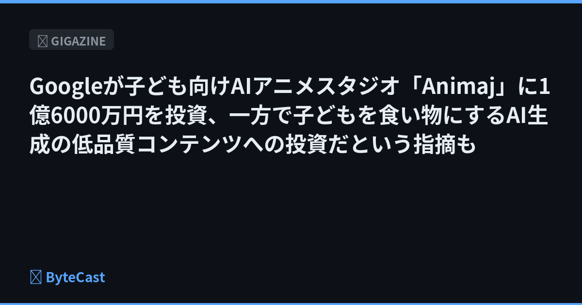 Googleが子ども向けAIアニメスタジオ「Animaj」に1億6000万円を投資、一方で子どもを食い物にするAI生成の低品質コンテンツへの投資だという指摘も