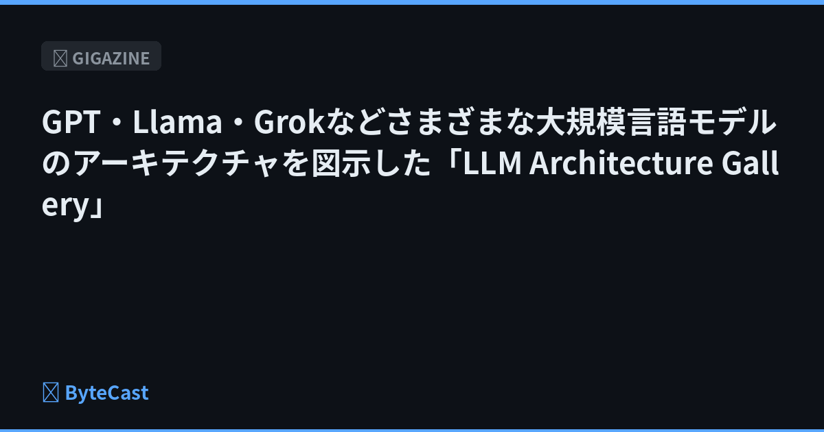 OpenAIのGPTシリーズやxAIのGrok、MetaのLlamaなどさまざまな大規模言語モデルが存在しますが、これらの構造を図示した「LLM Architecture Gallery」がオンラインで公開されています。