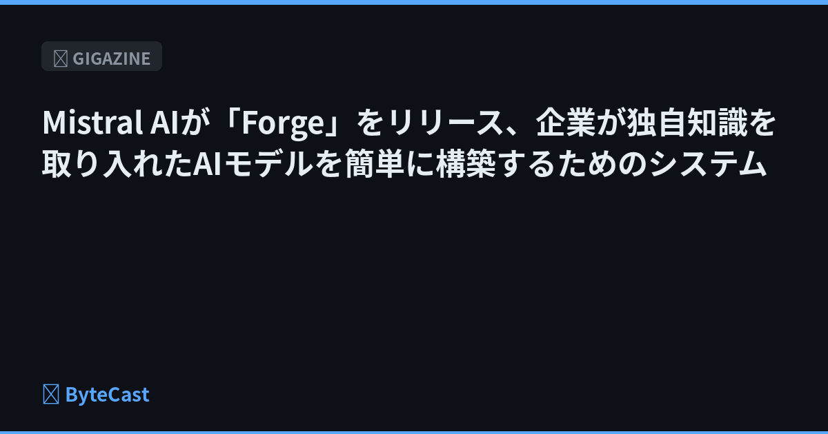 AI企業のMistral AIが、企業が自社の知識に基づいた最先端レベルのAIモデルを構築するためのシステム「Forge」をリリースしました。このシステムを使うことでAIを自社固有の業務に適合させることが可能になるとされています。