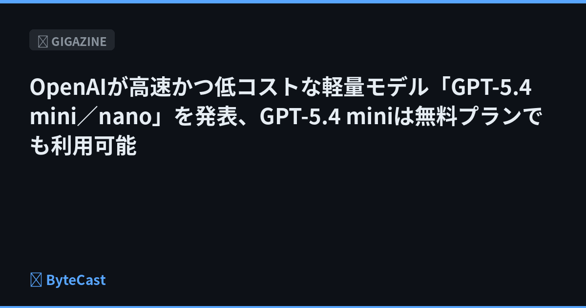 OpenAIが2026年3月に登場したGPT-5.4の軽量版である「GPT-5.4 mini」「GPT-5.4 nano」をリリースしたと2026年3月17日に発表しました。