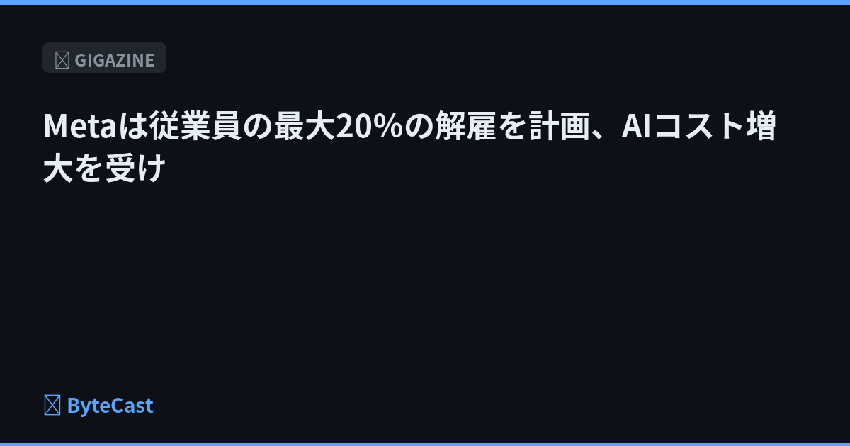 FacebookやInstagramの運営元として知られるMetaが、AIへの投資を進めるために全従業員の20%に相当する1万5800人を解雇することを計画していると報じられました。