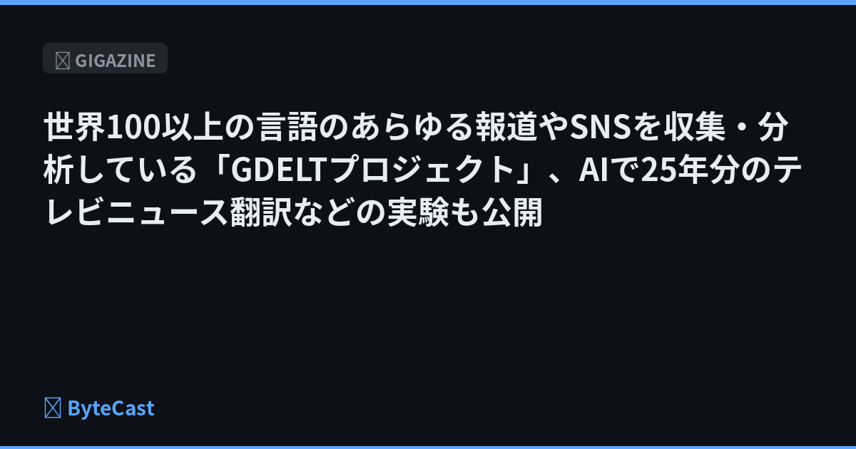 世界100以上の言語のあらゆる報道やSNSを収集・分析している「GDELTプロジェクト」、AIで25年分のテレビニュース翻訳などの実験も公開