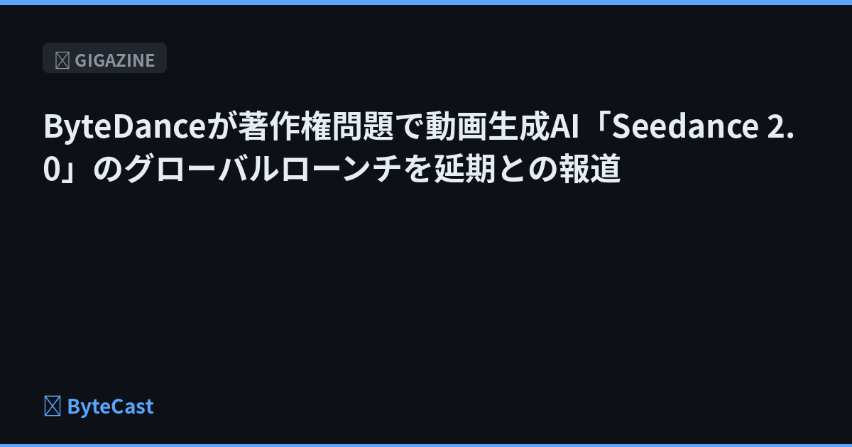 ショート動画共有アプリ・TikTokの運営元として知られるByteDanceが、動画生成AI「Seedance 2.0」の著作権侵害問題を受け、同AIのグローバルリリースを延期させたと報じられています。