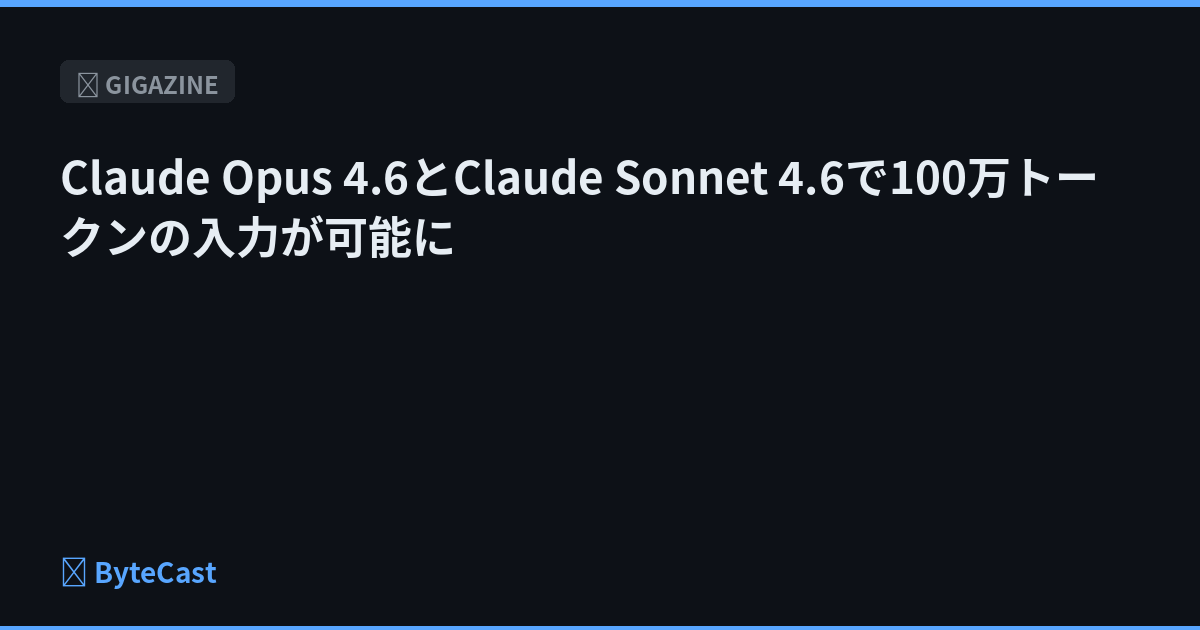 Claude Opus 4.6とClaude Sonnet 4.6で100万トークンの入力が可能に