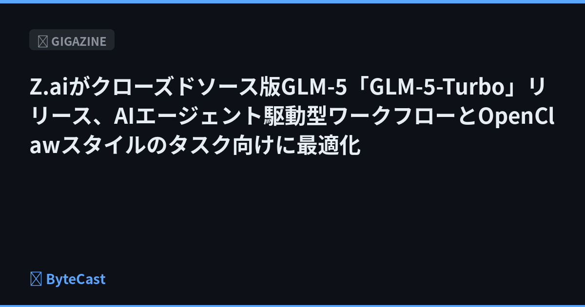 Z.aiがクローズドソース版GLM-5「GLM-5-Turbo」リリース、AIエージェント駆動型ワークフローとOpenClawスタイルのタスク向けに最適化