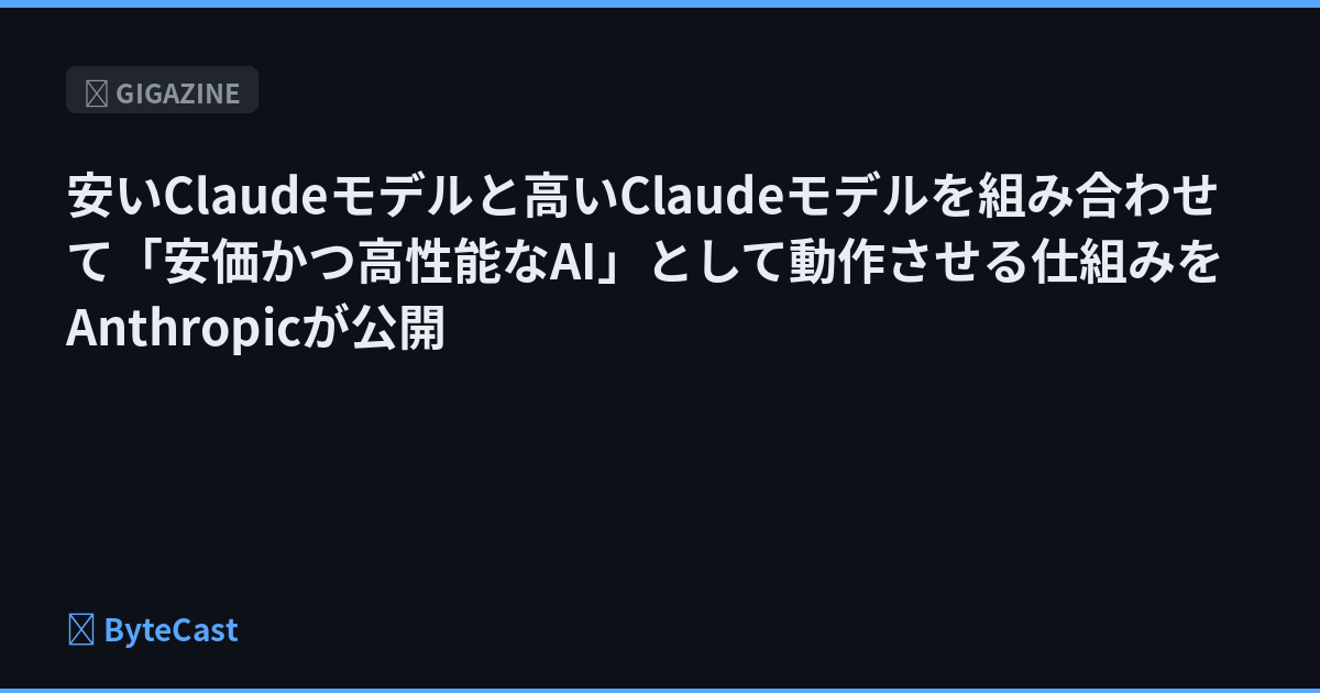 安いClaudeモデルと高いClaudeモデルを組み合わせて「安価かつ高性能なAI」として動作させる仕組みをAnthropicが公開