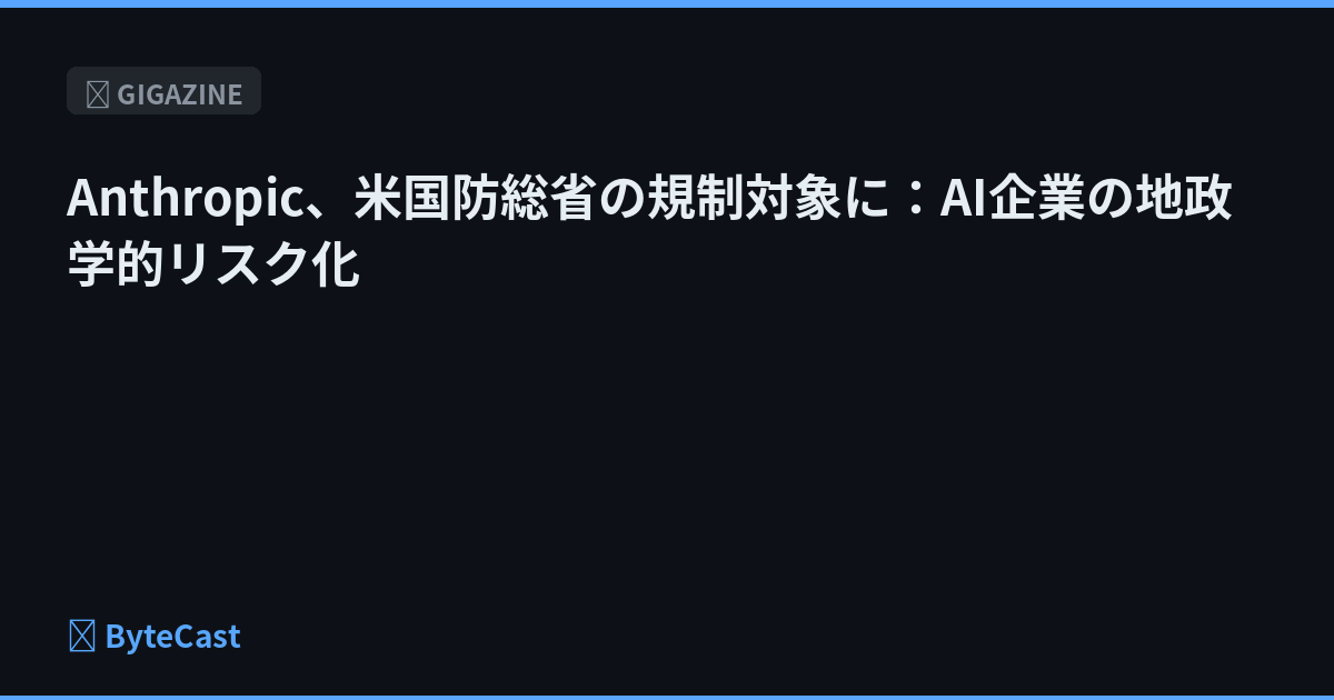 Anthropic、米国防総省の規制対象に:AI企業の地政学的リスク化