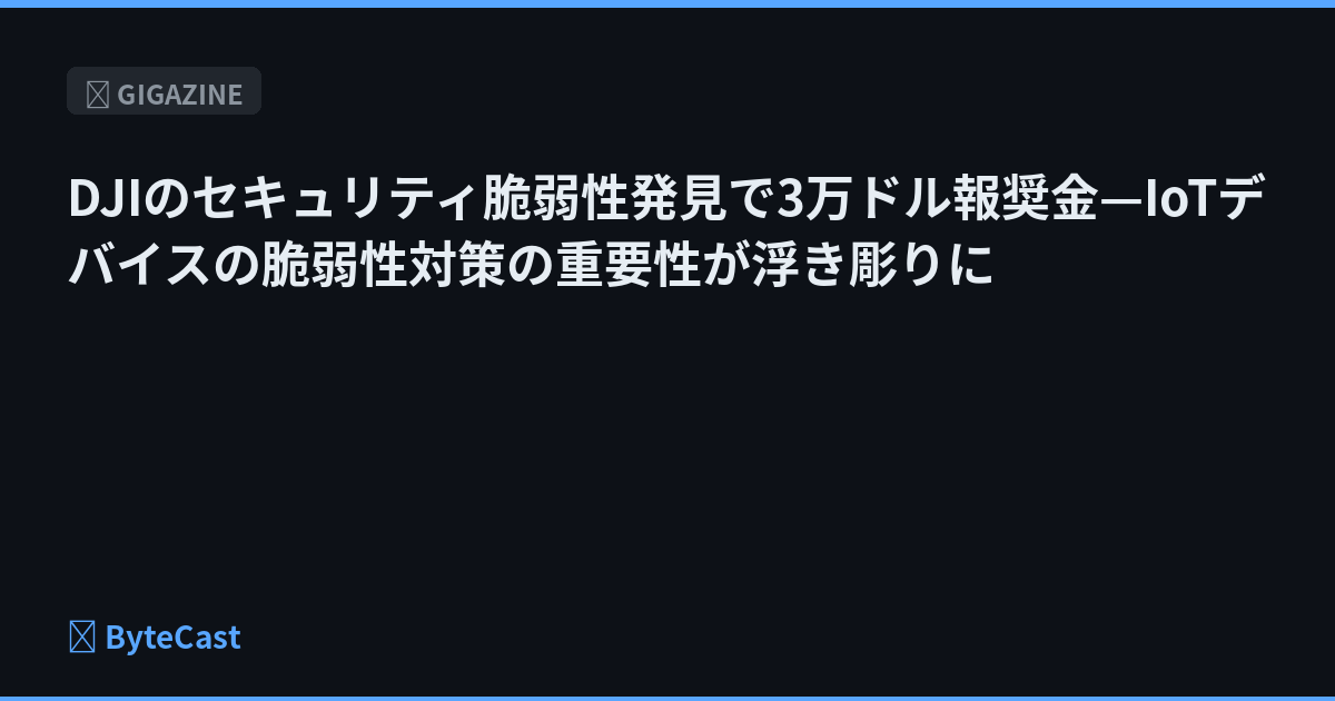 DJIのセキュリティ脆弱性発見で3万ドル報奨金—IoTデバイスの脆弱性対策の重要性が浮き彫りに