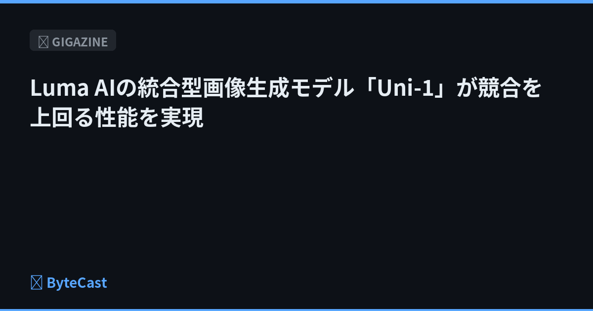 Luma AIが発表した統合理解生成モデル「Uni-1」がベンチマークで既存モデルを凌駕。画像生成AIの競争構図が変わる可能性がある。