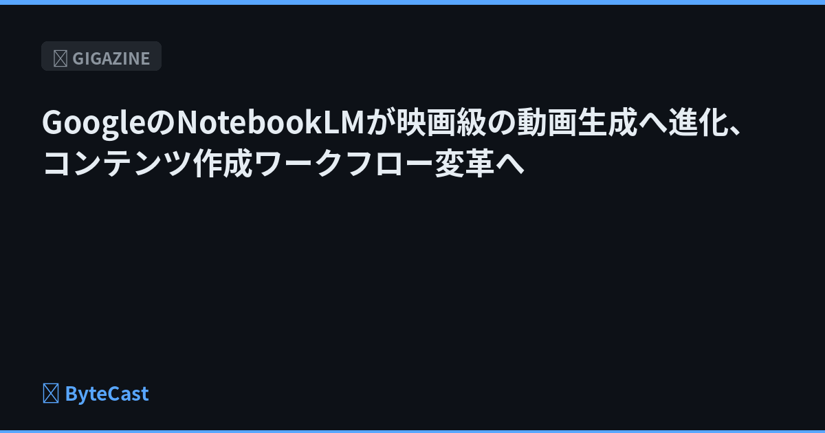 NotebookLMの「シネマティックビデオ概要」機能により、テキスト情報が自動で高品質な映像化コンテンツに変換可能に。エンジニアとクリエイターのツール選択基準が大きく変わる可能性がある。