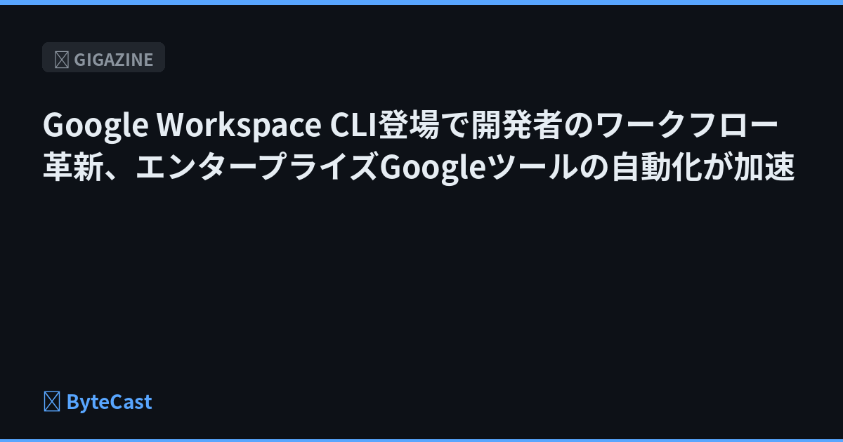 2026年3月にGoogle Workspace CLIがリリース。ドライブ・Gmail・スプレッドシートなど主要サービスをコマンドラインから統合管理でき、AIエージェント機能も搭載。エンジニアの生産性向上とCI/CD統合の新展開が期待される。