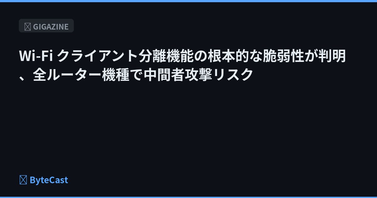 Wi-Fi クライアント分離機能の根本的な脆弱性が判明、全ルーター機種で中間者攻撃リスク