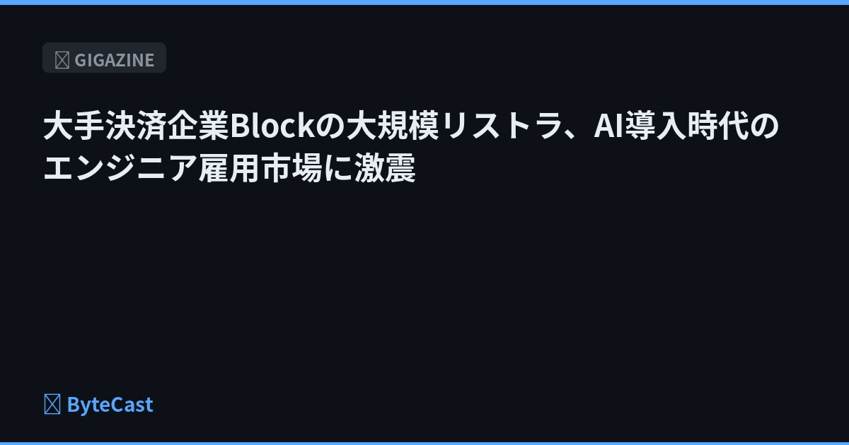 Square親会社Blockが従業員の約40%削減を決定。AI・自動化導入による効率化が背景。テック業界の雇用縮小トレンド継続の兆候として注視が必要。