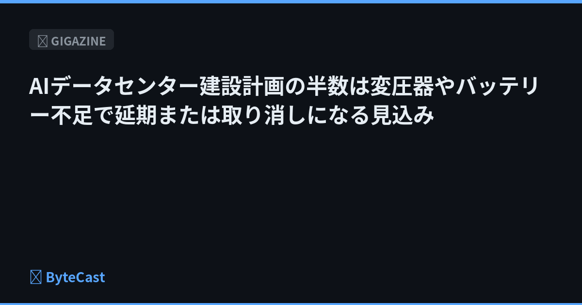 AIデータセンター建設計画の半数は変圧器やバッテリー不足で延期または取り消しになる見込み