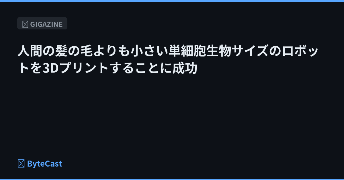 オランダ最古の総合大学であるライデン大学の研究チームが、脳を持たないにもかかわらず単細胞生物のように動き回ることができる極小サイズのロボットを3Dプリントすることに成功しました。