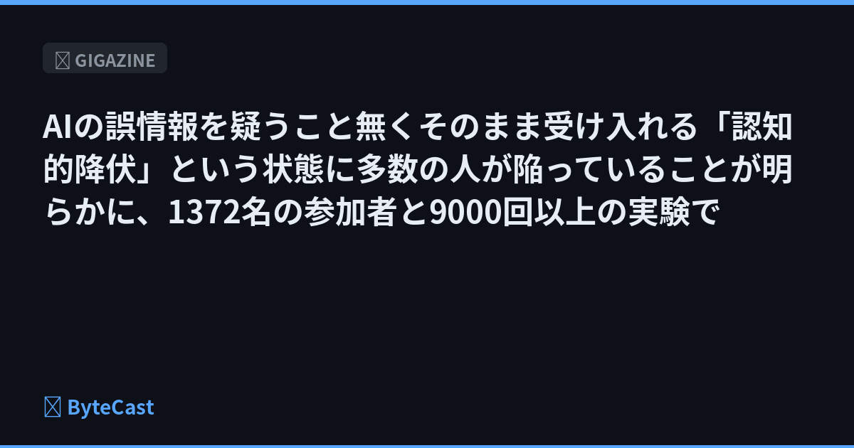 AIの誤情報を疑うこと無くそのまま受け入れる「認知的降伏」という状態に多数の人が陥っていることが明らかに、1372名の参加者と9000回以上の実験で