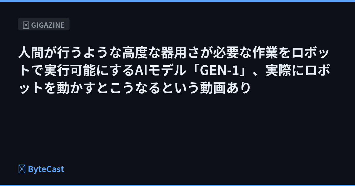 AI研究・開発企業のGeneralistが、実世界におけるロボットの動きを最適化するAIモデル「GEN-1」を発表しました。従来のモデルでは成功率64%だったタスクにおいて、GEN-1は平均成功率を99%に向上させたとしています。