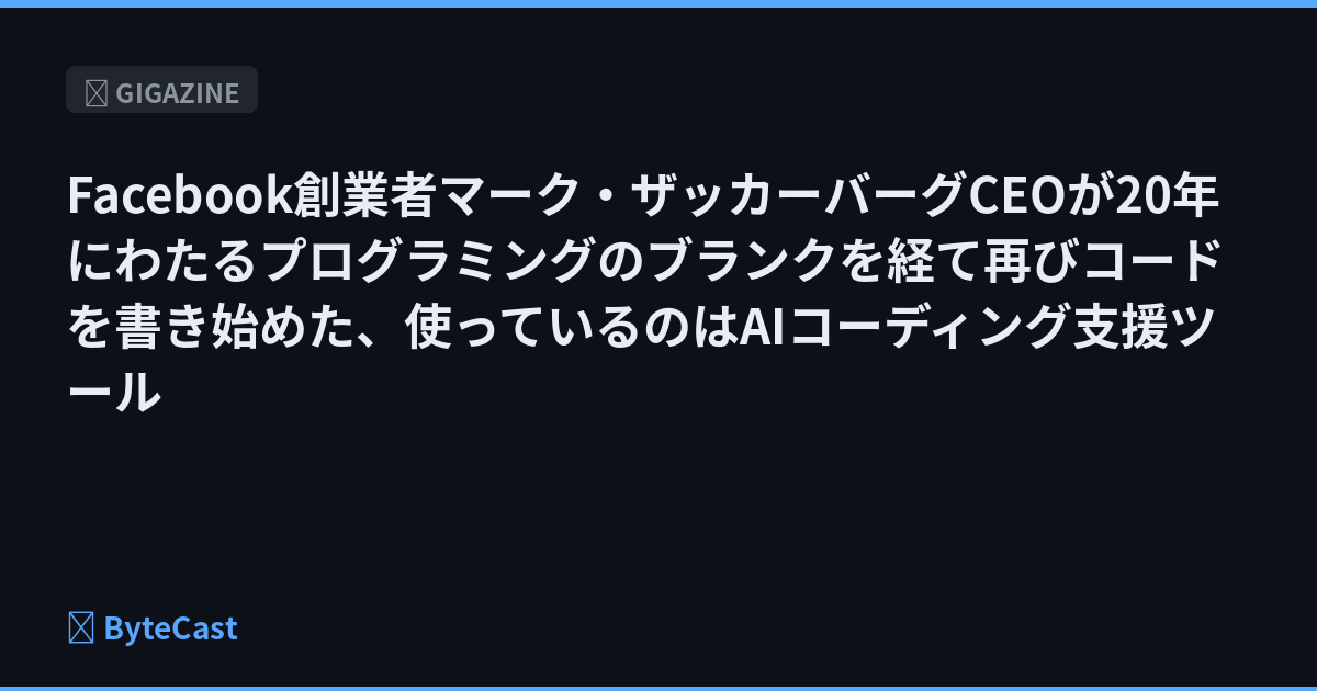 Facebook創業者マーク・ザッカーバーグCEOが20年にわたるプログラミングのブランクを経て再びコードを書き始めた、使っているのはAIコーディング支援ツール