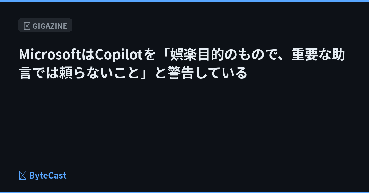 MicrosoftがAIチャットボット『Microsoft Copilot』について、利用規約で「娯楽目的のもの」であり「重要なアドバイスでは頼らないでください」と警告していることがわかりました。