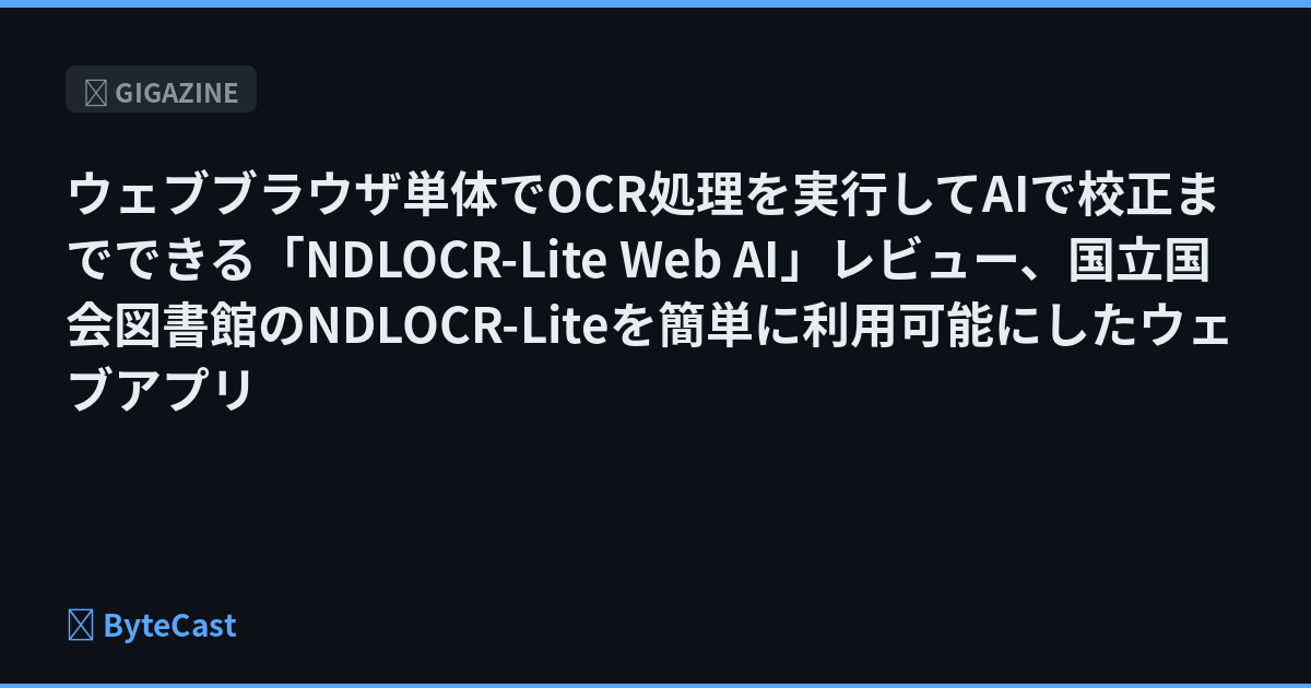 ウェブブラウザ単体でOCR処理を実行してAIで校正までできる「NDLOCR-Lite Web AI」レビュー、国立国会図書館のNDLOCR-Liteを簡単に利用可能にしたウェブアプリ