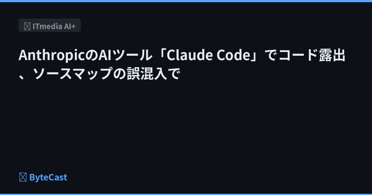 Anthropicの「Claude Code」のソースコードが一時アクセス可能な状態になり拡散した。原因はnpmパッケージへのソースマップファイルの誤混入で、同社はセキュリティ侵害ではなく人為的ミスと説明している。顧客データの漏えいは否定したが、公開されたコードの解析や再実装の動きが広がっている。