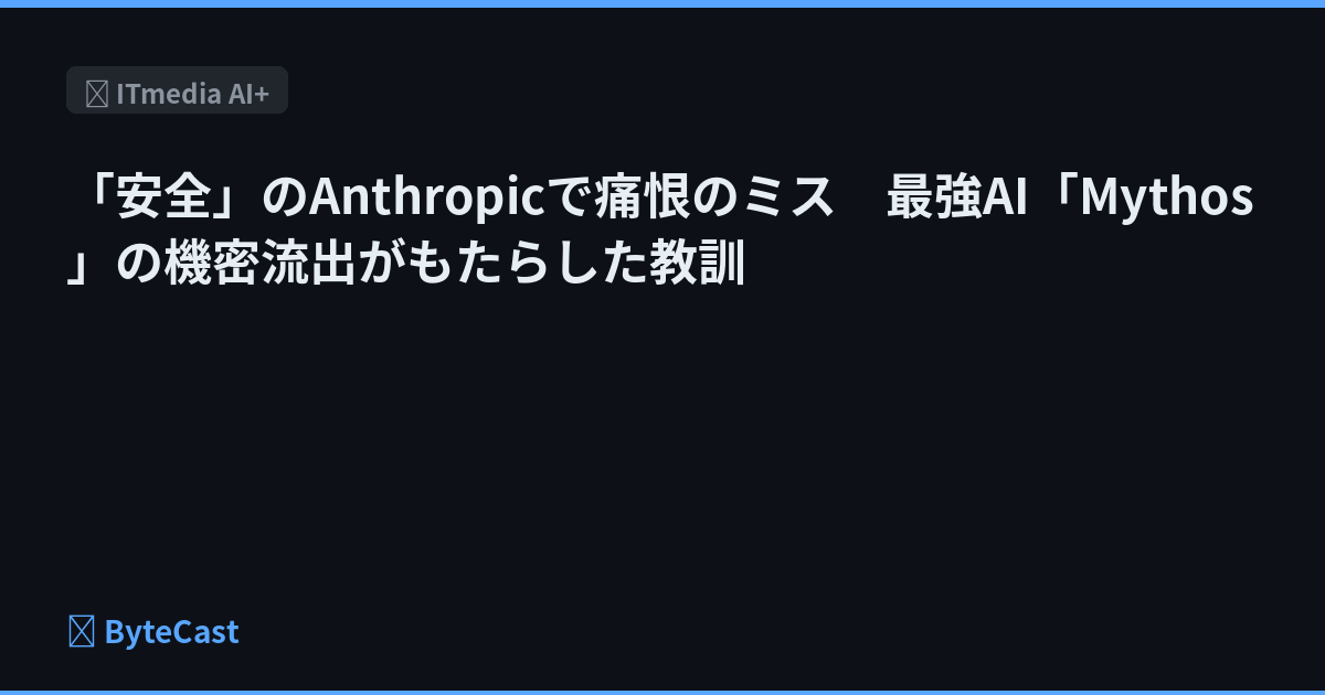 「安全」のAnthropicで痛恨のミス 最強AI「Mythos」の機密流出がもたらした教訓