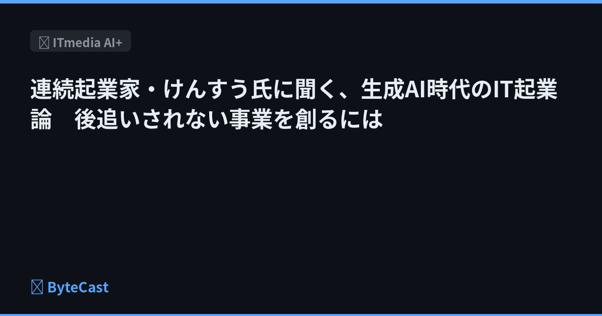 生成AIの台頭によって、IT起業のセオリーは根底から覆りつつある。連続起業家で、ビジネスインフルエンサー「けんすう」としても知られる古川健介さんも「(起業の)ハードルが上がったと評する。これから起業する人は何に目を付け、どんな事業を立ち上げるべきか。