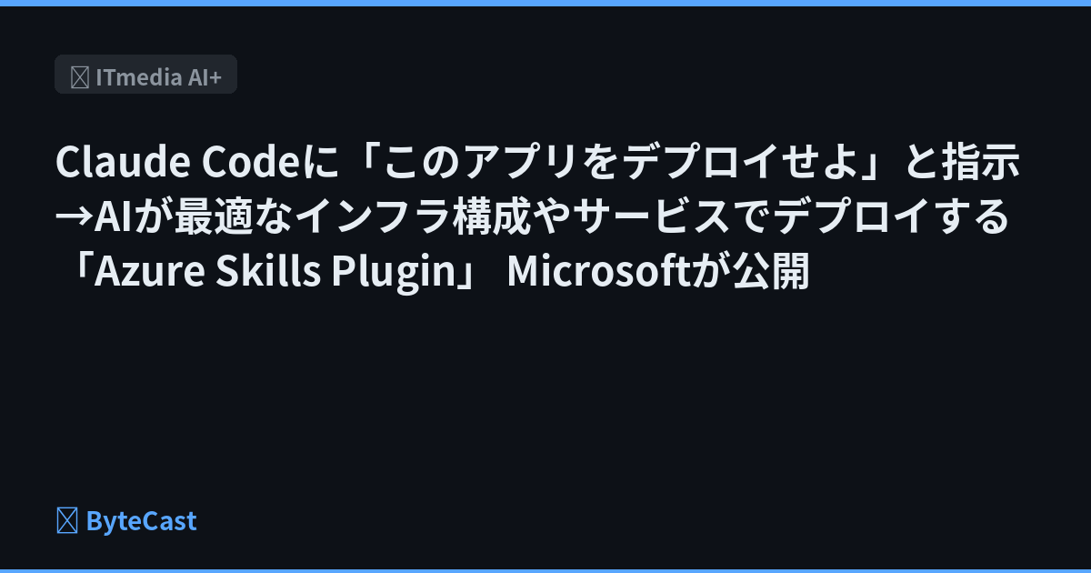米Microsoftが、Claude CodeやGitHubCopilotに自律的なインフラ構成とデプロイの能力を与える「Azure Skills Plugin」を公開しています。