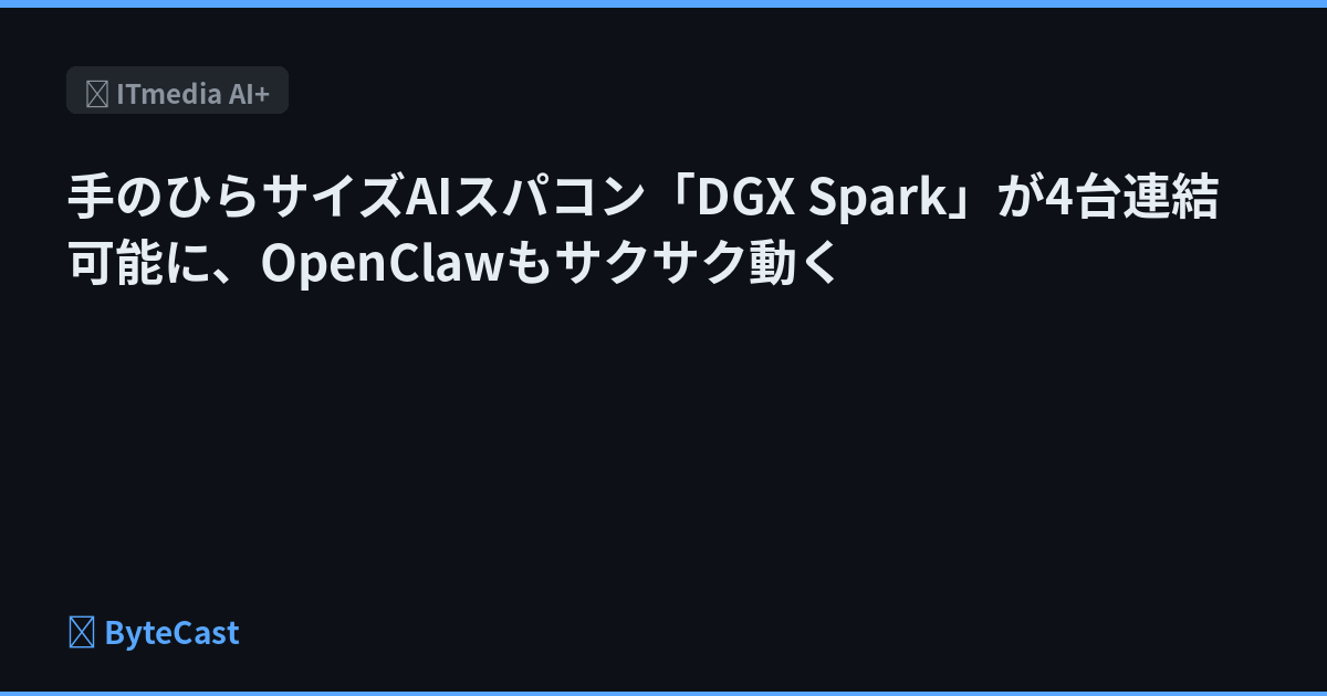 手のひらサイズAIスパコン「DGX Spark」が4台連結可能に、OpenClawもサクサク動く