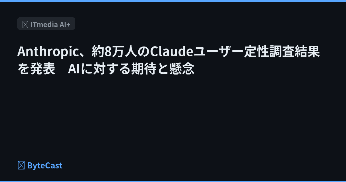 Anthropicは、Claudeユーザー約8万人を対象とした大規模な多言語定性調査の結果を報告した。ユーザーはAIに「卓越した専門性」を求めており、8割以上が実用性を実感している。