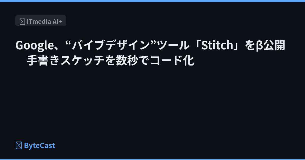 Googleは、AIを活用したUIデザイン生成ツール「Stitch」(β)をLabsで公開した。直感的なニュアンスでデザインを構築する「バイブデザイン」を掲げ、買収したGalileo AIの技術とGemini 3を統合。