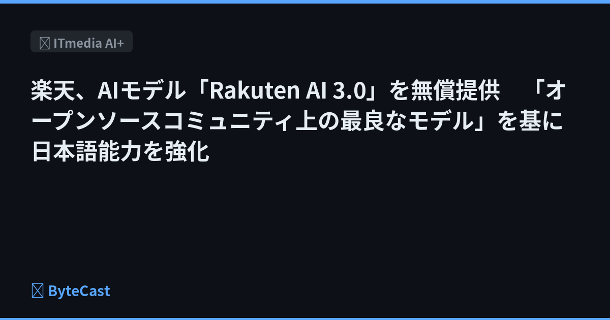 楽天は、国内有数の日本語特化型AIモデル「Rakuten AI 3.0」の提供を開始した。本モデルは約7000億パラメーターのMoEアーキテクチャを採用し、日本語性能で高い評価を得ている。無償公開を通じて国内のAI開発加速と技術支援を目指す。
