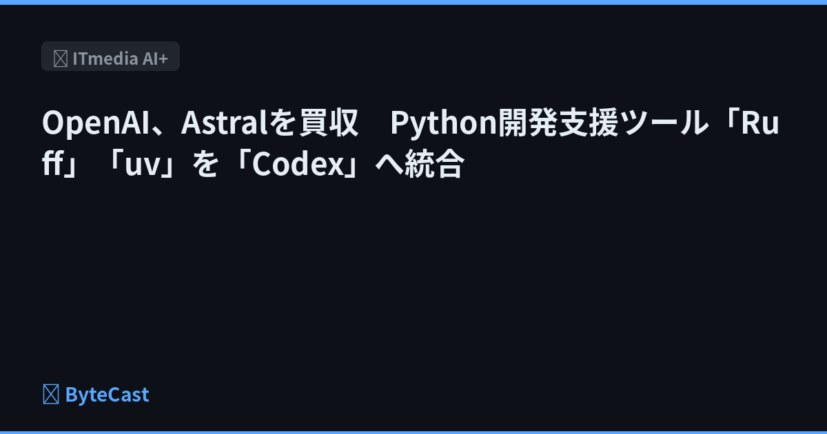 OpenAIは、Python開発者向け高速ツールを提供するAstralを買収することで合意した。高性能なコードチェックツール「Ruff」やパッケージ管理ツール「uv」を持つ同社の技術を、プログラミング支援AI「Codex」に統合する。