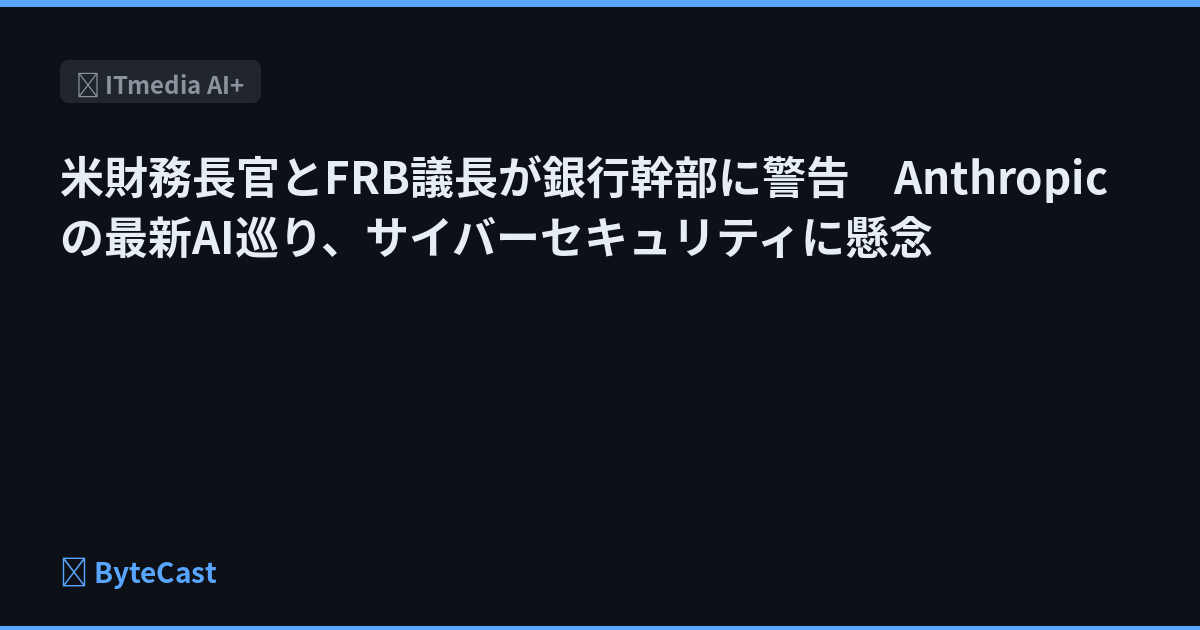 米財務長官とFRB議長が銀行幹部に警告 Anthropicの最新AI巡り、サイバーセキュリティに懸念