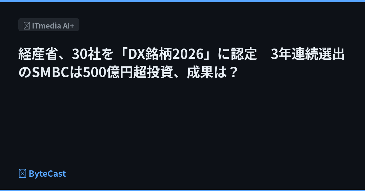 経産省、30社を「DX銘柄2026」に認定 3年連続選出のSMBCは500億円超投資、成果は?