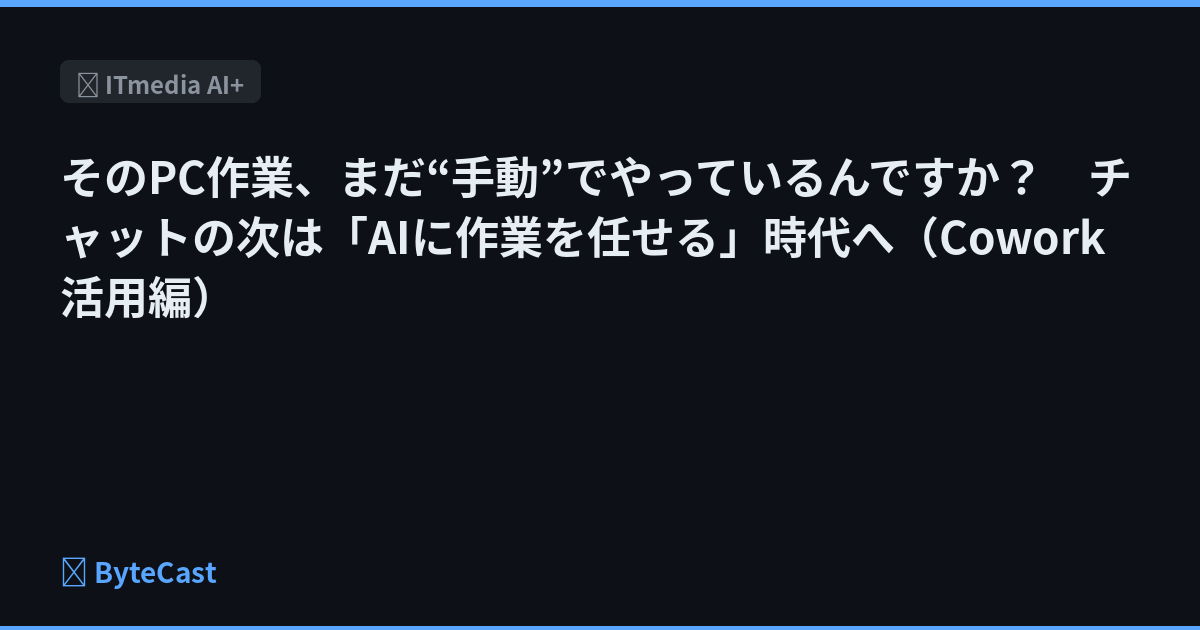 そのPC作業、まだ“手動”でやっているんですか? チャットの次は「AIに作業を任せる」時代へ(Cowork活用編)