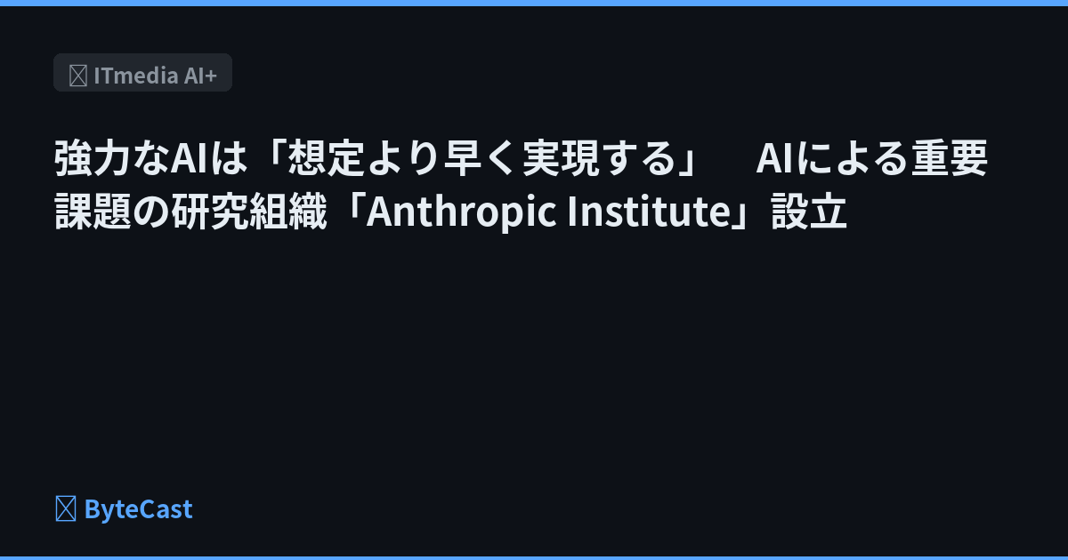 強力なAIは「想定より早く実現する」 AIによる重要課題の研究組織「Anthropic Institute」設立