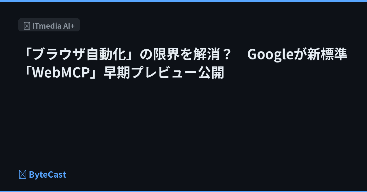「ブラウザ自動化」の限界を解消? Googleが新標準「WebMCP」早期プレビュー公開