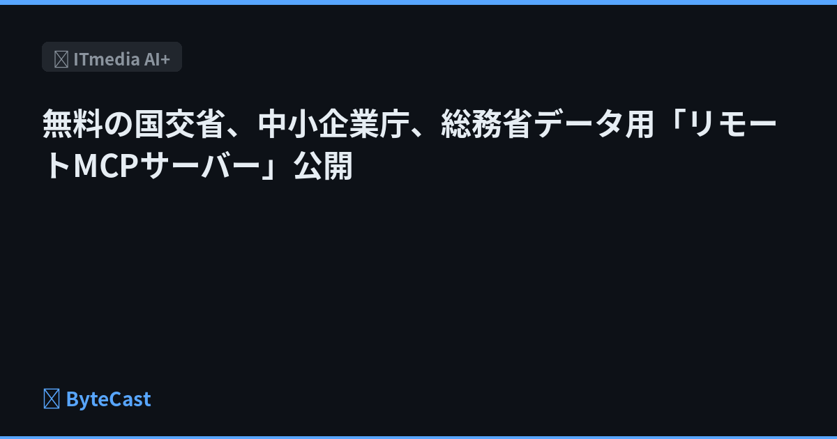 無料の国交省、中小企業庁、総務省データ用「リモートMCPサーバー」公開