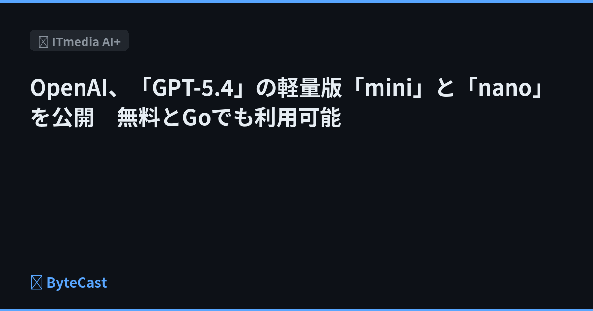 OpenAIは、最新モデル「GPT-5.4」の軽量版となる「mini」と「nano」を発表した。高い推論能力を維持しつつ、応答速度とコスト効率を最適化したものだ。無料版やGoプランでも利用可能で、開発者向けにはAPIを通じた提供も開始された。