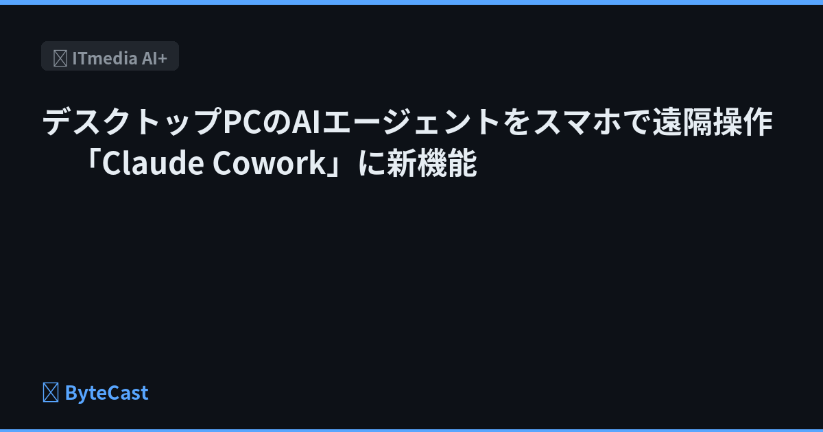 米Anthropicは、PC上でタスクを自律的にこなすAIエージェント「Claude Cowork」を、スマートフォンから遠隔操作する機能「Dispatch」の試験提供を始めた。