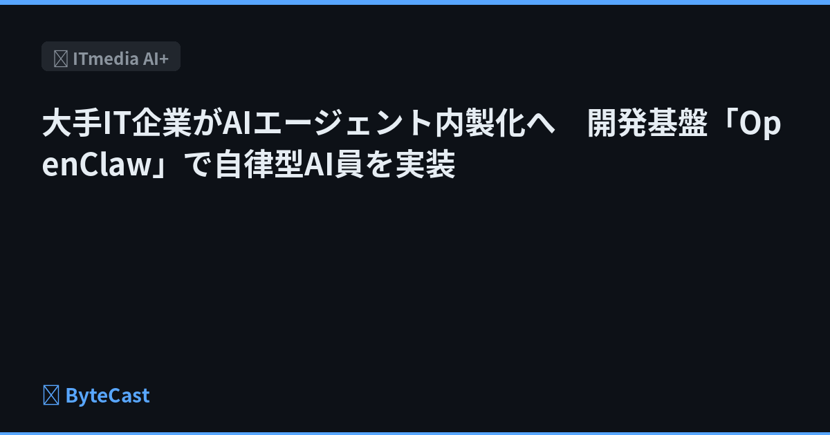 大手IT企業がAIエージェント内製化へ 開発基盤「OpenClaw」で自律型AI員を実装