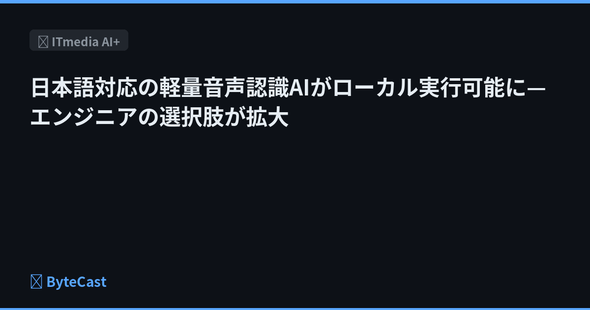 日本語対応の軽量音声認識AIがローカル実行可能に—エンジニアの選択肢が拡大