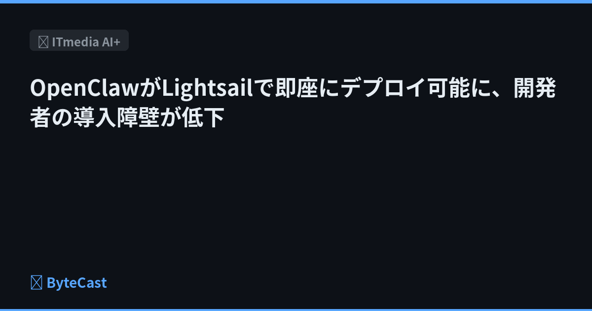 AWSがOpenClawの事前設定イメージをAmazon Lightsailで提供開始。VPS上での複雑な構築手順が簡素化され、開発チームの初期設定コストが削減される見通し。