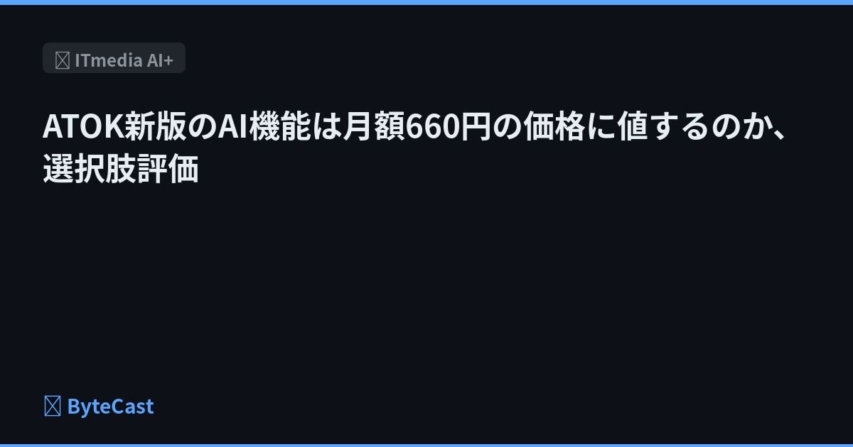 ATOKがVer.36で生成AI文書補助機能を投入。月額660円の実質値上げと無料AI対応IMEの台頭で、購買判断が分岐点を迎えている。