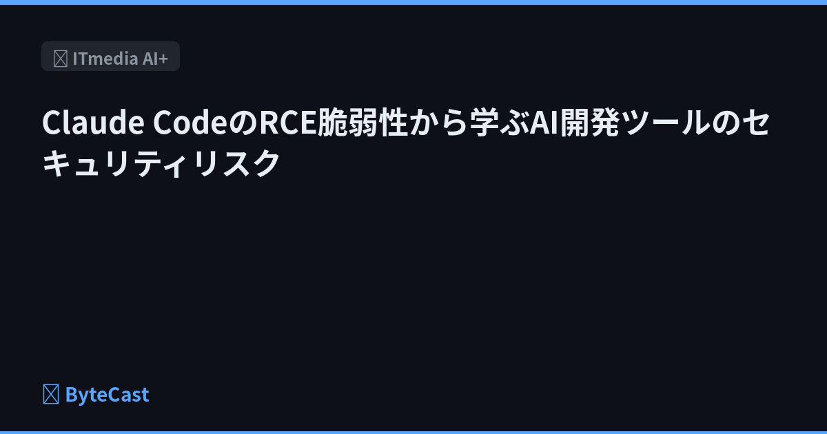Claude Codeに設定ファイル経由のRCE脆弱性が発見。修正済みだが、AI開発基盤の供給チェーンセキュリティに新たな警告信号。エンジニアが認識すべきリスク管理ポイント。