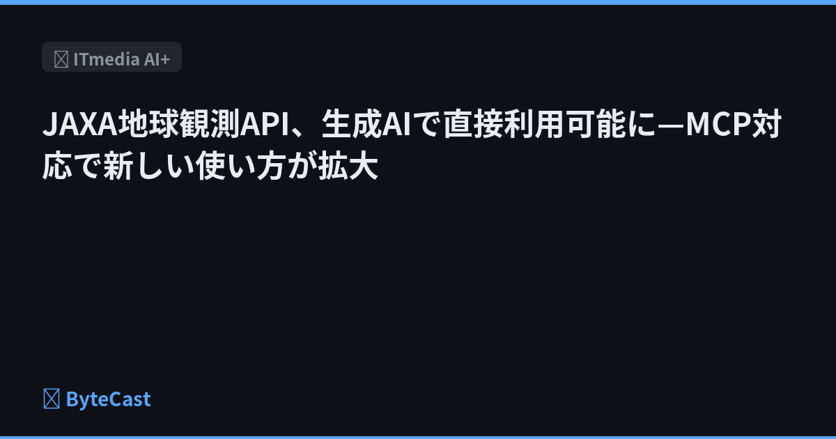 JAXAの地球観測データAPIがMCP対応。Python APIがv0.1.5で更新され、ChatGPTなど生成AIツール上で衛星データの可視化・分析が可能になりました。